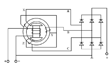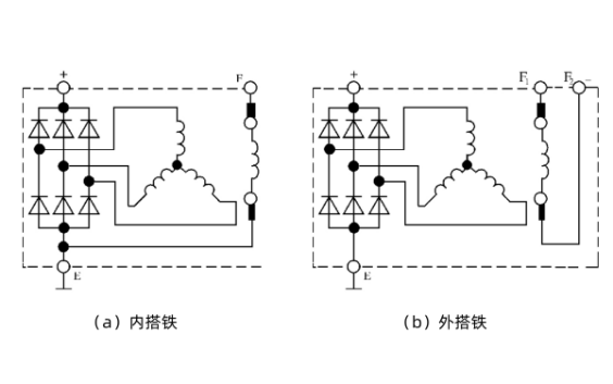 如圖B(a)所示,發(fā)電機磁場繞組的一端與發(fā)電機殼體連接的交流發(fā)電機。