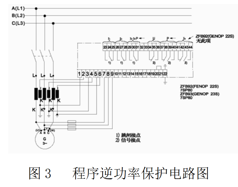 (1)逆功率繼電器:采用方向元件(如90°接線)結(jié)合有功計算模塊,輸出跳閘信號。